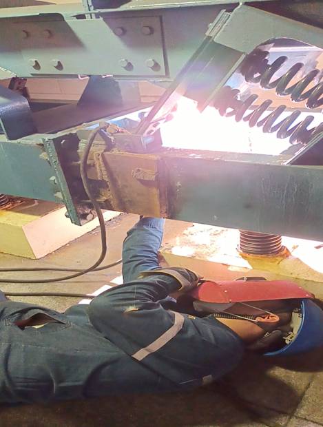一切都因为高负荷的运转,使制粉系统本就老化的设备更加的脆弱不堪。加之劣质煤的掺烧,更使得石子煤系统不堪重负。在这样的双重攻势下,石子煤系统像每天都在上演着不同类型的剧情,使得维修班组手忙脚乱。输送机螺栓断裂、及输送机机架断裂,导致输送机跳机的情况频频发生。输送机瘫痪后磨煤机石子煤无法及时排出,需要大量人员用铁锨掏石子煤。就是这样艰难,却没有一人抱怨、推拒,都铆足干劲去克服。设备突发的故障,不管是在什么时间,工作人员都会全力以赴。加班更是成了家常便饭。针对每次发生的意外故障,处理完成后专人进行评估、研究、商讨,这样的情景绘成了夏日里团团的“烈火”。