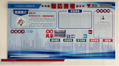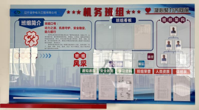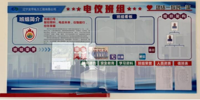 3、班组建设的宣传墙面,是项目部文化墙建设中占比最大的区域,它涵盖机务、电仪、保洁班组墙面建设及项目部走廊公示牌建设。展示的内容丰富多样,首先是班组的成立与简介,通过文字和班组标志图片的结合,排列着班组的通知公告、安全学习、人员资质、值班及开展各项工作时拍摄的风采照片等,呈现了班组的光辉历程和骄人业绩。