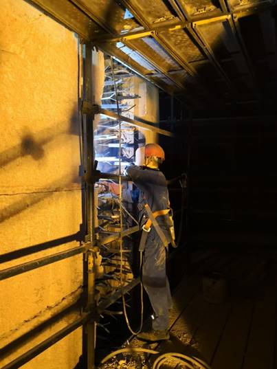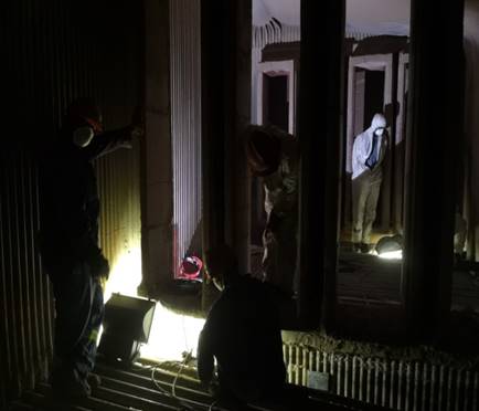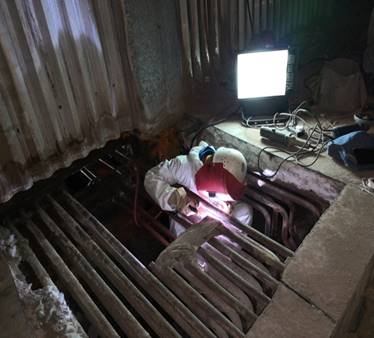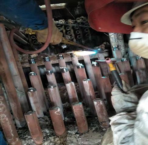 与此同时,另一个作业面——过热器管屏及水冷壁的抢修施工也在紧张地进行着,同样是不分昼夜,同样加班加点;为了能够合理有序的进行抢修,我们制定了详细的进度计划,有些工序精确到了小时,管工、焊工、热处理人员、金属探伤人员密切配合,团结协作,我们的员工李国、刘长明、胡金山在工作最忙的时候,吃饭的时候都是轮流着吃,终于,我们在15天之内,在只有2名高压焊工的情况下,共计完成了承压焊口126道,非承压焊口176道,保证了业主提出的水压时间点。