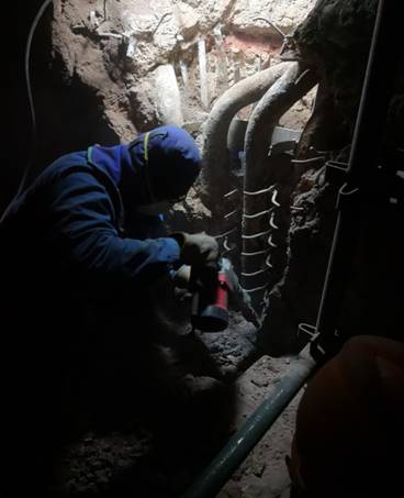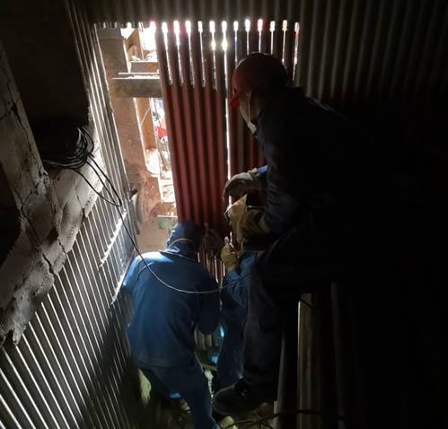 在中国电力工程有限公司博茨瓦纳项目部的领导下,我公司负责的检修部立刻投入到了紧张的抢修工作当中。为了尽可能的及早恢复部分电力供应,业主方决定先抢修出#1机组,紧接着再抢修#2机组。从10月6日开始,我公司开始投入大量的人力进行外置床床料的清理。这次的床料清理工作量非常大,因堆积的床料已发生板结,清理起来非常困难,再加上作业空间小,床料还没有完全冷却,由于床料的堵塞,空气还无法流通,作业空间内的施工条件非常艰苦。在我公司员工葛培宝、赵红军、郭成江的带头下,率领十几个当地雇工,加班加点,昼夜两班倒,连续工作了22天,终于将外置床床料清理工作全部完成。