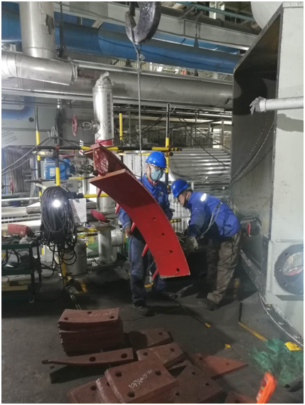 进入检修现场,你会看到紧张而有序的工作场面,蓝色的工作服点缀着磨煤机检修现场;手中的砂轮散发着阵阵火花;整个现场的工作气氛热火朝天。在业主的密切配合及全体职工的努力下本次大修上半年的工作任务圆满完成。