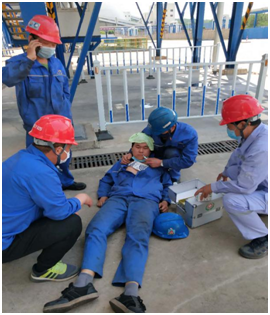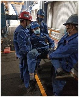 近日气温的“突飞猛进”,给原本高温环境下的磨煤机区域又增加了一个大大的“火炉”,“烤验”着现场的每一位员工。在这样的一个环境中,为及时有效预防和处置高温天气下作业环境引发的中暑事件,王太祥副总亲自至磨煤机区域进行慰问,在确保现场工作正常开展情况下,组织员工开展高温天气中暑应急演练,增强班组员工在处理高温天气下突发中暑的应变与自救技能。