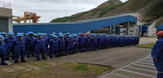 台山项目部为台山电厂燃料系统维护、保洁工作已做了长时间准备,从人员配备到现场作业工器具,各班组人员施工安全培训等工作都已准备就绪。2020年7月31日早7:30,由项目副经理张庆利组织台山项目部各专业人员在国华台电燃料部生产楼集合,各班组人员统一穿好工作服、佩戴好安全帽和口罩列队整齐等待交接会议开始。