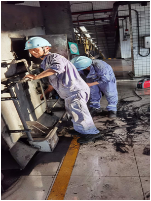 国华台山电厂是火力发电厂,是利用煤作为燃料生产电能的工厂,我公司承接了台电燃料设备系统维护和保洁工作,燃煤用输煤皮带从煤场输送至锅炉进行燃烧,然而从事燃料设备维护和保洁工作并没有一般电厂维护工作来得轻松和简单。