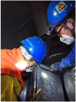 夜间进行磨煤机定检此前还从未有过,考虑到夜间检修较之白天困难大,气温低等种种原因,为了将困难最小化,孟津项目部提前准备。工作票与运行部门积极协商,工作负责人积极配合,确保第一时间拿到工作票,尽早开展工作;工器具方面,安排人员提前布置现场,高标准高质量的做好工器具定期摆放;备品备件提前盘点,做好早规划早使用;提升安全管控,作业期间管理人员全程监护;加强后勤保障,针对夜间环境温度低,作业人员配发保暖手套、棉背心等。此外,项目部还为夜间人员提供饮品、热水、点心等夜宵。检修期间,作业人员充分发挥不怕苦,不怕累的斗争精神,克服天气和身体的双重考验,加班加点抢工期,努力保证机组稳定运行。