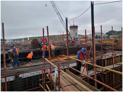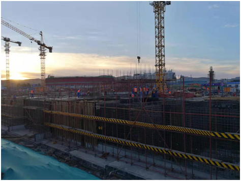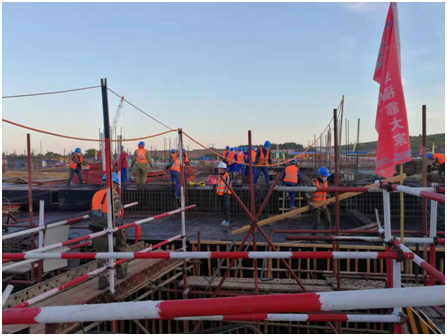 从正式开工到现在,将近两个半月的时间里,我们共计完成了地下管网各种管道安装约500米,厂区道路完成约2000立方米,浇筑混凝土约2200立方米,钢筋完成约370吨。目前正在进行紧张施工的行政综合楼,基础混凝土全部浇筑完毕,地下室结构的钢筋绑扎、模板全部完成,计划9月27日开始进行整体浇筑,意味着在9月底,行政综合楼的地下部分结构施工将全部完成。