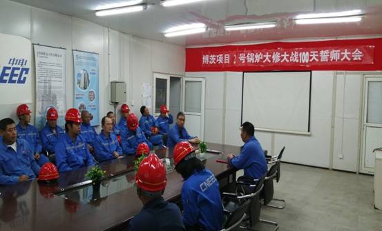 此前博茨项目全体员工已经奋战两个月。虽然很苦很累,但是大家依然积极响应项目部的号召,以饱满的热情和必胜的信心迎接#2炉的大修。此次中电项目部也很重视这次大修,因为此次大修施工任务比较繁重而且人员相对比较紧张。为此项目部特意召开全体施工人员专题会,同时在检修即将开始又召开了全体人员动员大会。所有即将参加检修的人员也表达了自己的决心和信心。相信项目部的每个龙宇人一定会以勇于担当和奋干求实的精神圆满完成#2炉的检修。