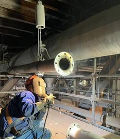 面临时间紧,任务重,人员紧缺等问题,公司项目部积极筹措、精心准备;各岗位职工通力协作,分工明确;各级领导和技术骨干每日深入现场一线,对检修质量、进程、工艺等进行全面管控,各个环节严把安全关、进度关、质量关,确保高质高效完成检修工作。目前施工现场一片繁忙的景象,全体人员团结一心为早日完成此次检修奉献出自己的一份力量。此次1号炉检修主要工作为:石灰石管道更换、水冷壁换管、减温水及主汽阀门更换、外置床外部支撑管封堵及风机检修等任务。